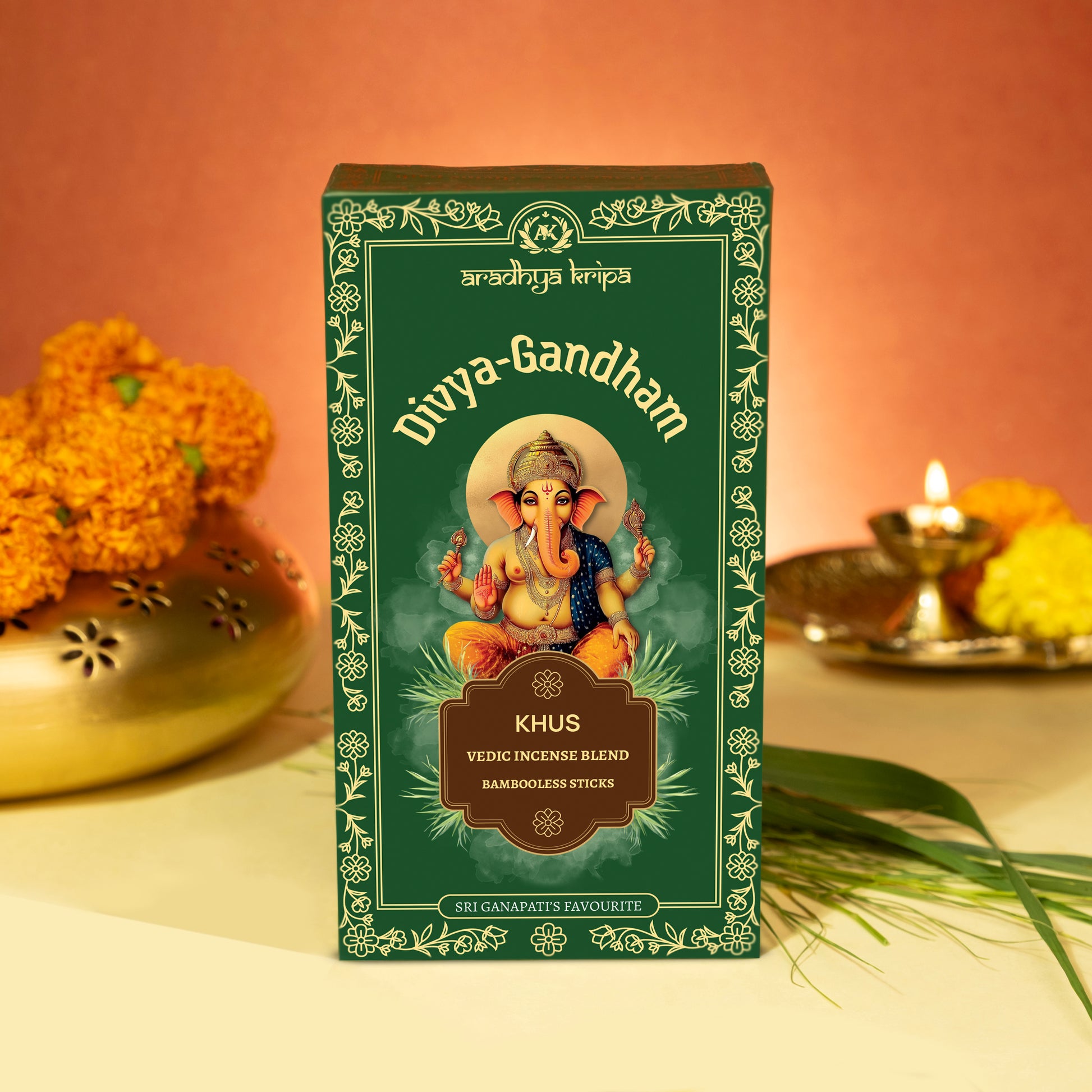 Khus, with its cooling and grounding fragrance, reflects the protective blessings of Shree Ganesh. To light this incense at the beginning of puja is to invoke his grace, steady the mind, and invite the removal of all obstacles.
